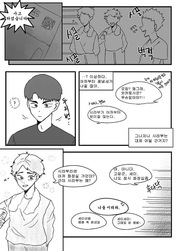안녕하세요! 퓨터입니다! 월간은 처음이라 좀 많이 미숙했던 거 같습니다^..^ 그래도 우백 존잘님들과 함께 하게 되어서 기쁜 마음으로 즐겁게 그렸습니다. 제목 짓는데 도움 주신 져린님, 그리고 마감하라고 독촉해주신 트친님들 모두 감사합니다! 시라부가 뱉는 꽃은 안개꽃인데 안개꽃에 대해 잘 표현못해 아쉽습니다.. 안개꽃 꽃말은 사랑의 성공이라 꼭 해보고 싶었어요! 비록 부족한 만화지만 즐겁게 봐주신다면 감사하겠습니다. 다들 우시시라 파세요! 우시시라 오래가라!